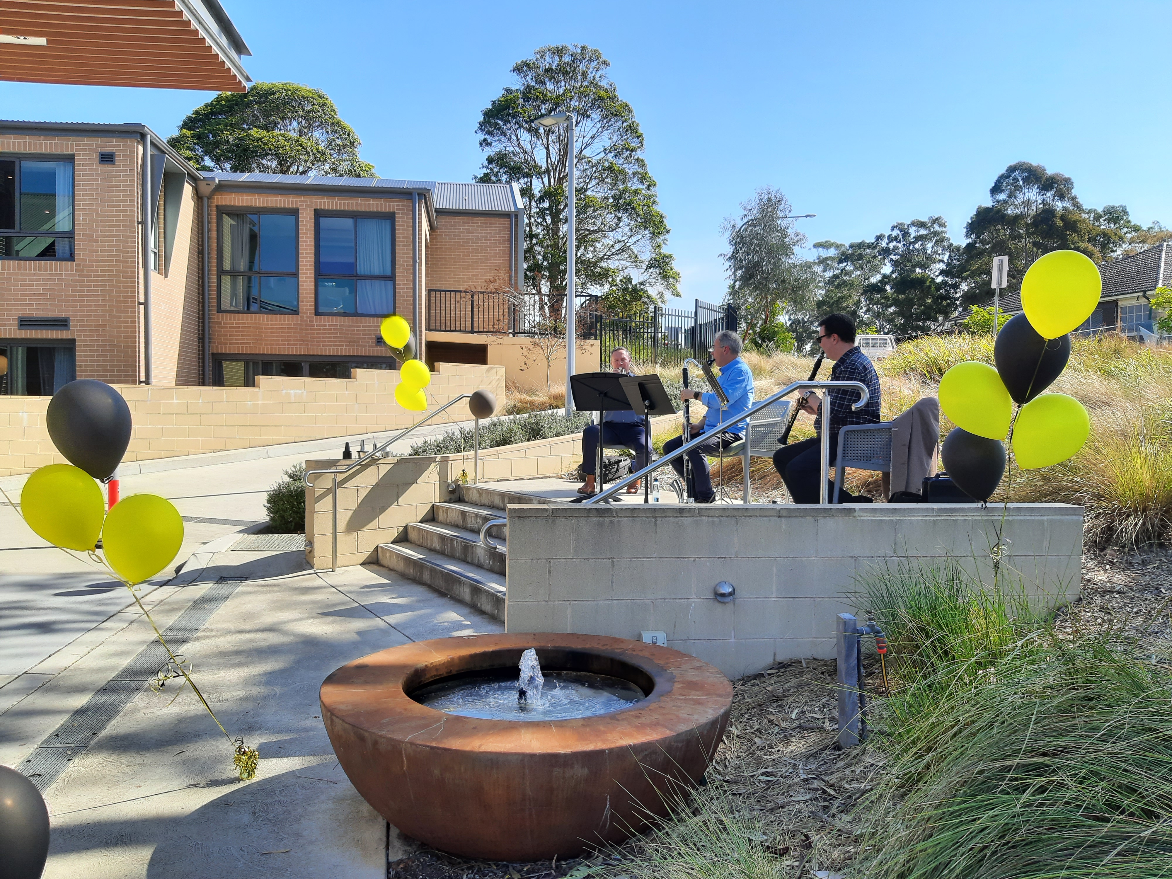 MacKillop House Norwest residents looked so relaxed, with their performance conducted amongst their beautifully landscaped gardens. The soothing trickle of the fountain complemented the tranquil music played.
